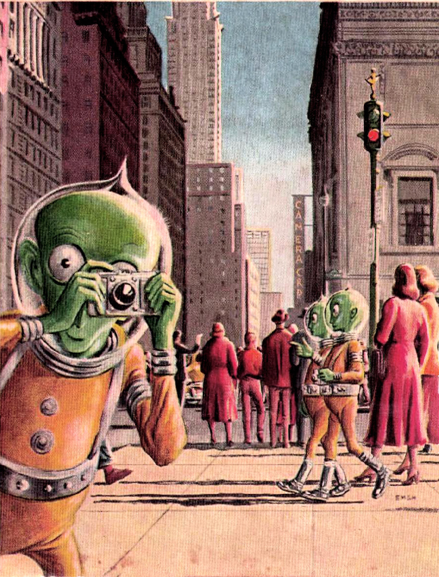 Edmund Alexander Emshwiller fue un famoso ilustrador y artista visual, crador tanto de portadas para revistas pulp como de películas y videos experimentales. Generalmente firmaba sus ilustraciones como Emsh, pero en ocasiones lo hacía como Ed Emsh, Ed Emsler, Willer y otros. Nació en Lansing (Míchigan) el 16 de febrero de 1925, hijo de Errol Emshwiller, veterano de la Primera Guerra Mundial y profesor en un instituto local, y Sisie MacLellan. Se graduó en la Universidad de Míchigan en 1947 y estudió en la École des Beaux-Arts (1949-50) de París con su esposa, la escritora Carol Emshwiller (nacida Fries), con la que se había casado el 30 de agosto de 1949, y en la Liga de estudiantes de arte de Nueva York (1950-51).